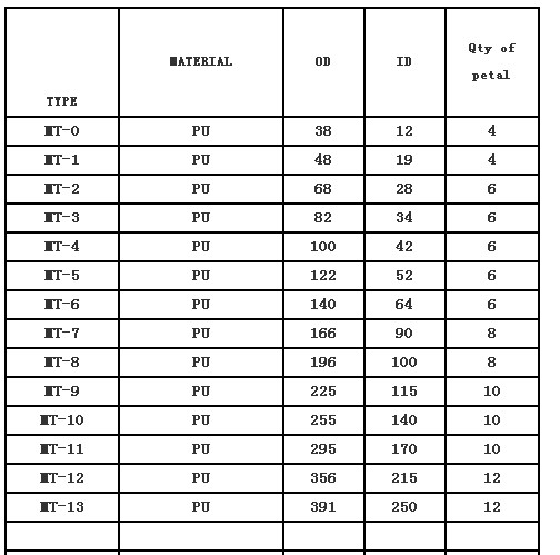 執行標準:GB/T 5272-85。型號范圍:MT1-MT13,硬度ShoreA95±2A。顏色:黃色/白色。產品均采用 聚氨酯材料生產,具有高、高回彈性、耐油耐水及優異的疲勞強度和抗沖擊性等優越性能,使得產品質量 優異!各種型號聚氨酯梅花墊如下:MT型梅花墊(MT1-MT13),GR型梅花墊(GR19-GR125)、GS型梅花墊(GS9-GS38),T型六角靠背輪墊(六角彈性墊),液力偶合器梅花墊(YOX),及各種非標梅花墊。泊頭市利群聯軸器有限公司廠家經營,