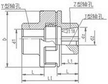 | 型號 | 公稱扭矩 Tn (N.M) | 許用轉速n (r/min) | 軸孔直徑 d1 d2 dz | 軸孔長度 | L0 | D | 許用補償量 | 梅花型彈性件 型號 | 轉動慣量I (Kg.m2 ) | 重量 m Kg | ||||||